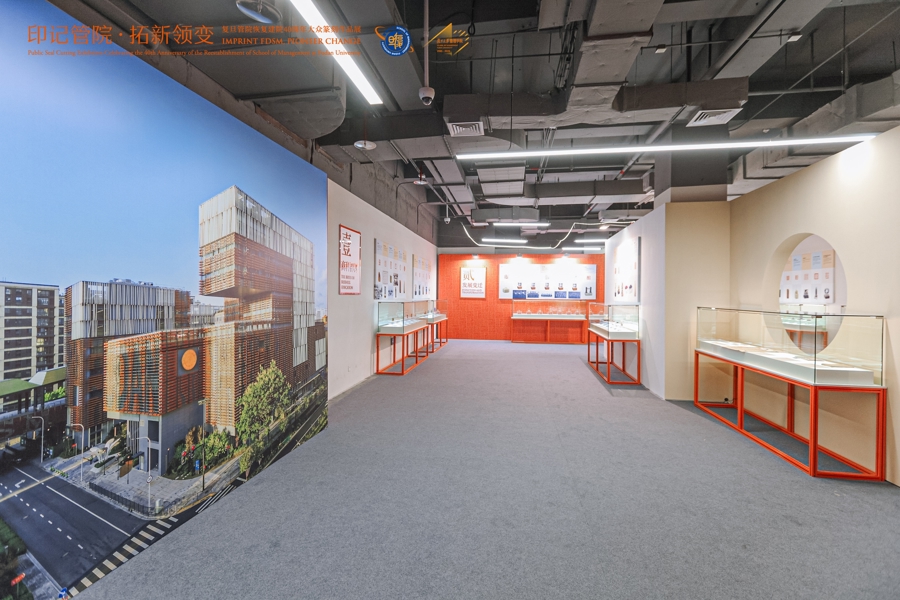 展览以商科发展历史为引,以“印记管院 拓新领变”为题,包括“商科初创”“发展变迁”“拓新领变”“求真卓越”“缅怀与感恩”“我是复旦人”六个展区。从传统材料到光敏树脂、玻璃微珠等新材料,从手工镌刻到激光雕刻、3D打印、彩色喷绘等新方法,展览作品以新理念、新设计、新材料和新科技,展现篆刻艺术的时代感与大众性。