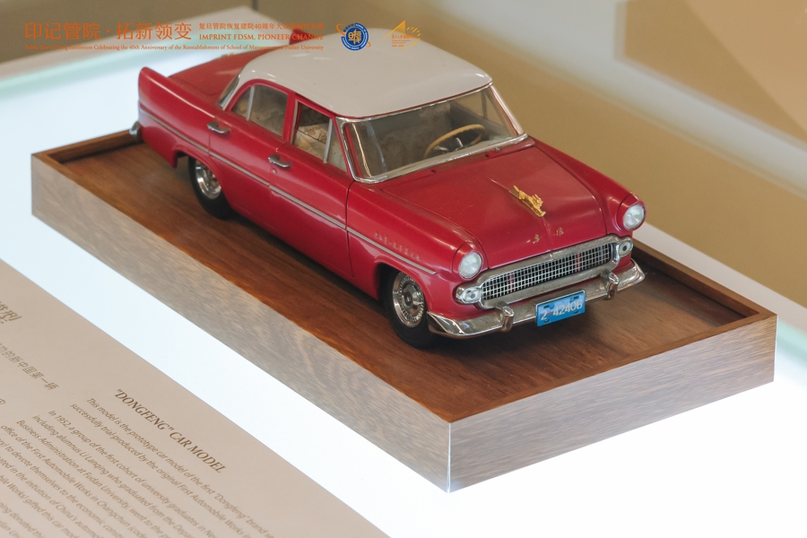 “我是复旦人”展区是展览亮点,这一展区展出了复旦大学企业管理系1952届校友李岚清同志捐赠给复旦大学和复旦管院的篆刻作品、题赠作品以及他曾工作过的第一汽车制造厂于1958年和1959年制造的新中国第一辆“东风”轿车和第一辆“红旗”轿车的模型,还有包括李岚清老校友在内的1952届工商管理系毕业生合影和1950年工商管理系15名同学报名参加抗美援朝的照片。