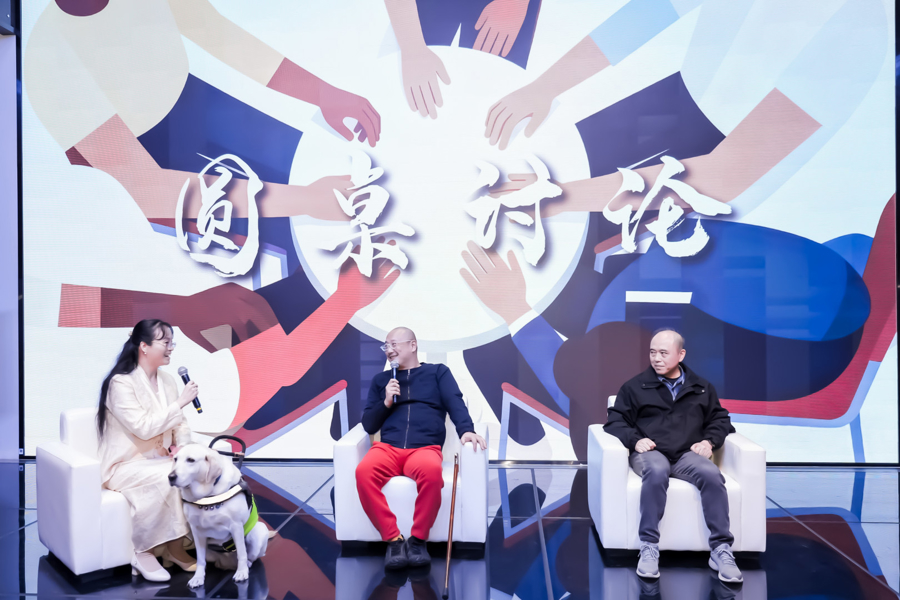 全国自强模范、视障人韩颖与艺术家、同济大学客座教授刘毅、上海新华数字电影院线有限公司运营总监凌英韬的对话,围绕“AI技术提升盲人文化生活品质的实践路径”、“AI创作对残疾人自我表达与社会价值的赋能”以及“未来AI科技助残与社会融合的展望”等展开。他们认为,AI技术激发了残疾人的创造力,推动其从文化的“受益者”转变为“创作者”,无论生活品质提升还是个人发展方向的拓宽,都拥有更广阔的可能性塑造出AI时代的文化表达新身份。同时,包括无障碍影视制作在内的助残事业,在AI时代也必进入技术的新探索。