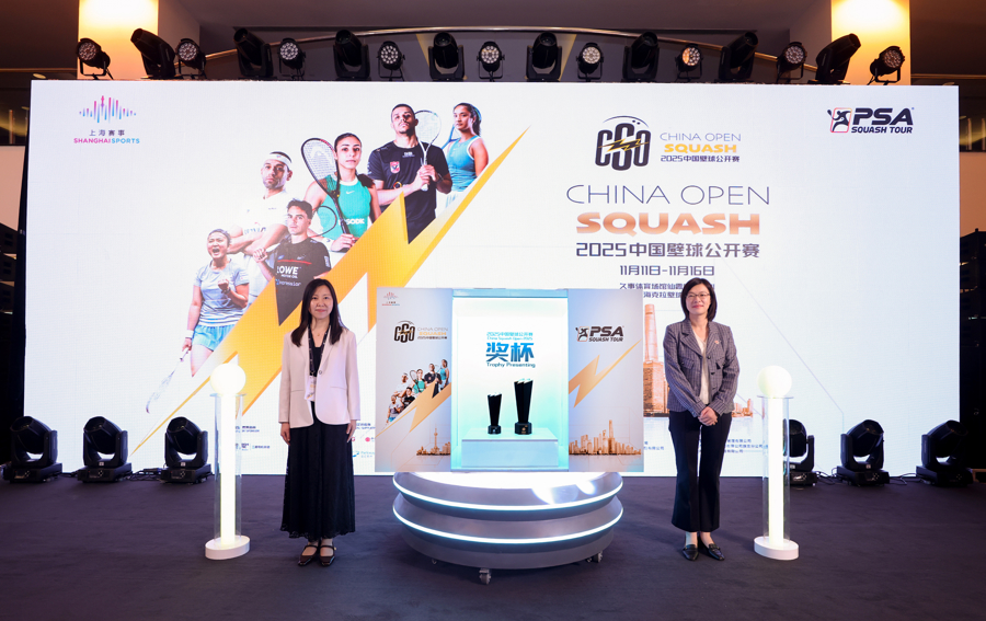 活动现场首次揭晓了赛事奖杯。奖杯设计融合闪电元素与上海城市剪影,既体现壁球运动的速度与激情,也寓意赛事与上海这座现代都市的深度联结。