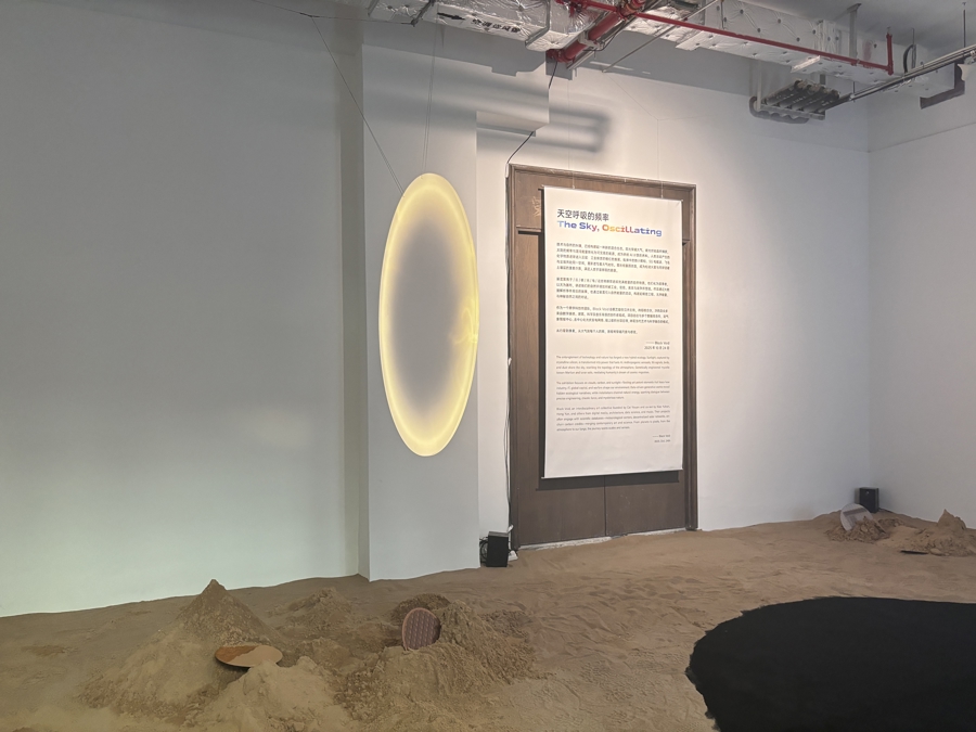 个展“天空呼吸的频率”分为三个章节,共展出十余件作品。以“云、碳、光、电”等自然元素为叙事线索,融合宇宙气象学、信息技术等视角,借助多媒体艺术、装置和剧场语言,打造多屏沉浸式影像空间。展览旨在将抽象的气候议题转化为可感知的视听体验,引领观众步入一场跨越不同维度的感官之旅。