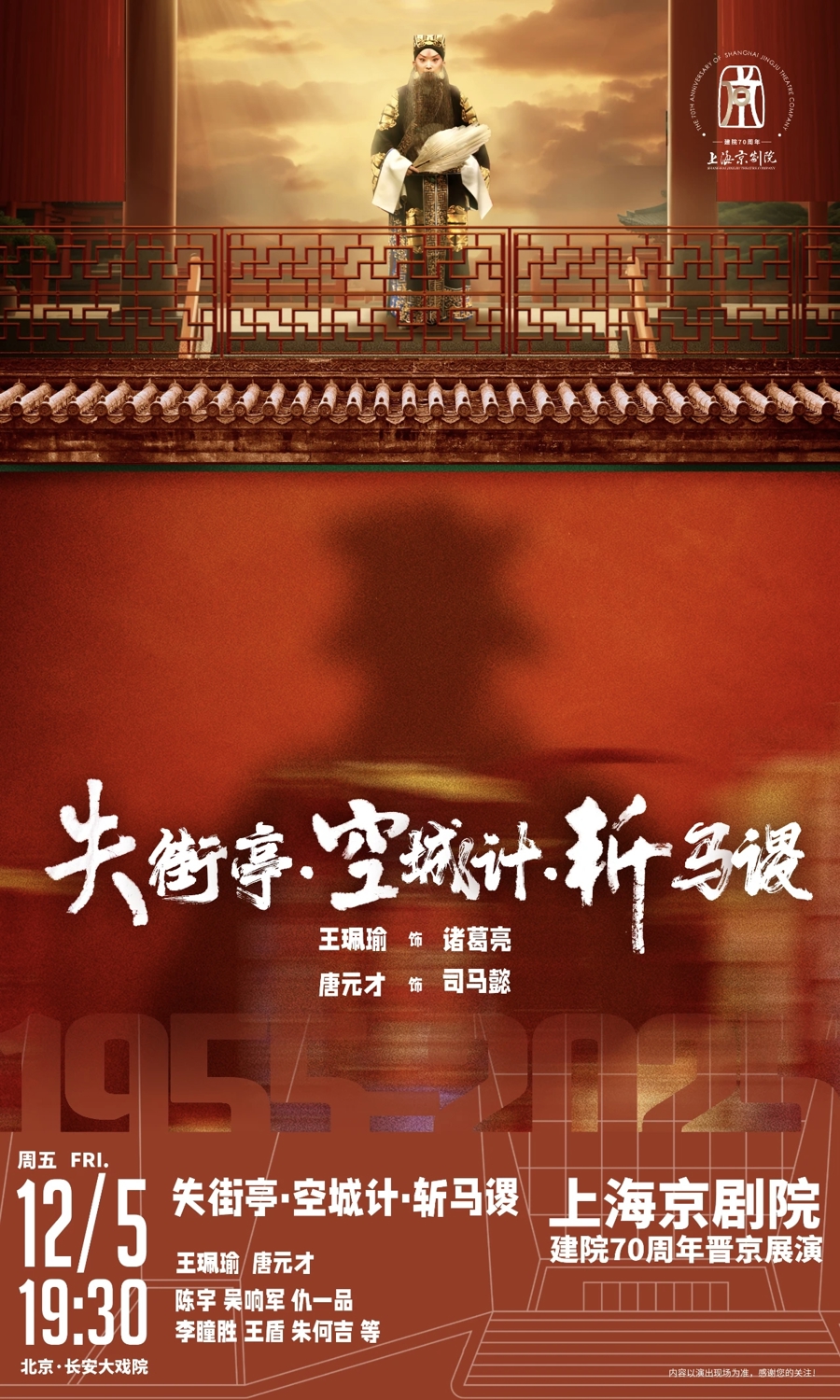 上海京剧院院长张帆表示,为期一周的晋京展演是今年上京建院70周年系列活动中的重要环节,也是上京代表作品与人才培养成果在北京的全面展示。剧目选择上有传统大戏,也有原创经典,演出阵容汇聚了上京多位梅花奖得主,老中青三代“全员出动”。他鼓励剧组,“我们多年没有如此‘全员出动’地赴京演出,务必聚精会神交出漂亮的答卷。不论台前幕后,上京全体演职人员将以最佳状态,保证演出质量、保持上京作风、展现上京风范。”