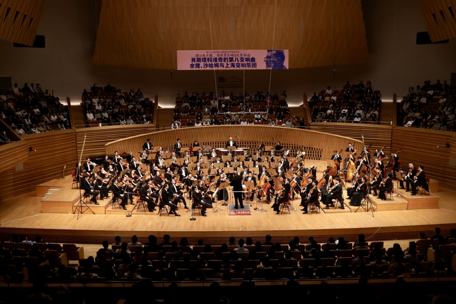 这是第24届中国上海国际艺术节演出之一。音乐会下半场,余隆执棒上海交响乐团演绎了肖斯塔科维奇《c小调第八交响曲》。在肖斯塔科维奇《第五交响曲》和《第七交响曲》收获如潮好评之后,上海交响乐团继续肖斯塔科维奇交响曲全集的录音计划,向高峰发起攀登。